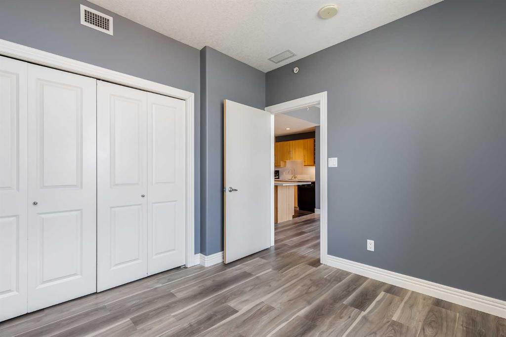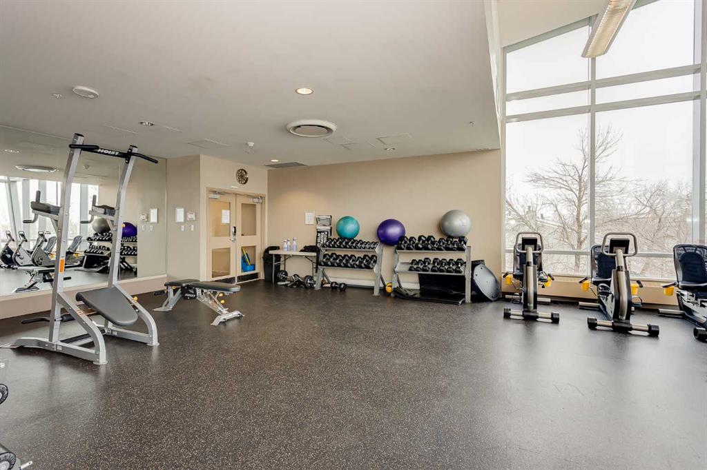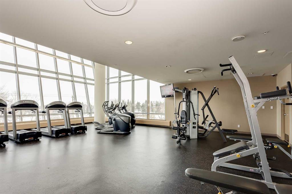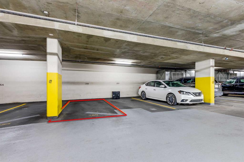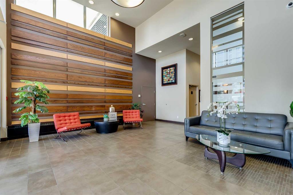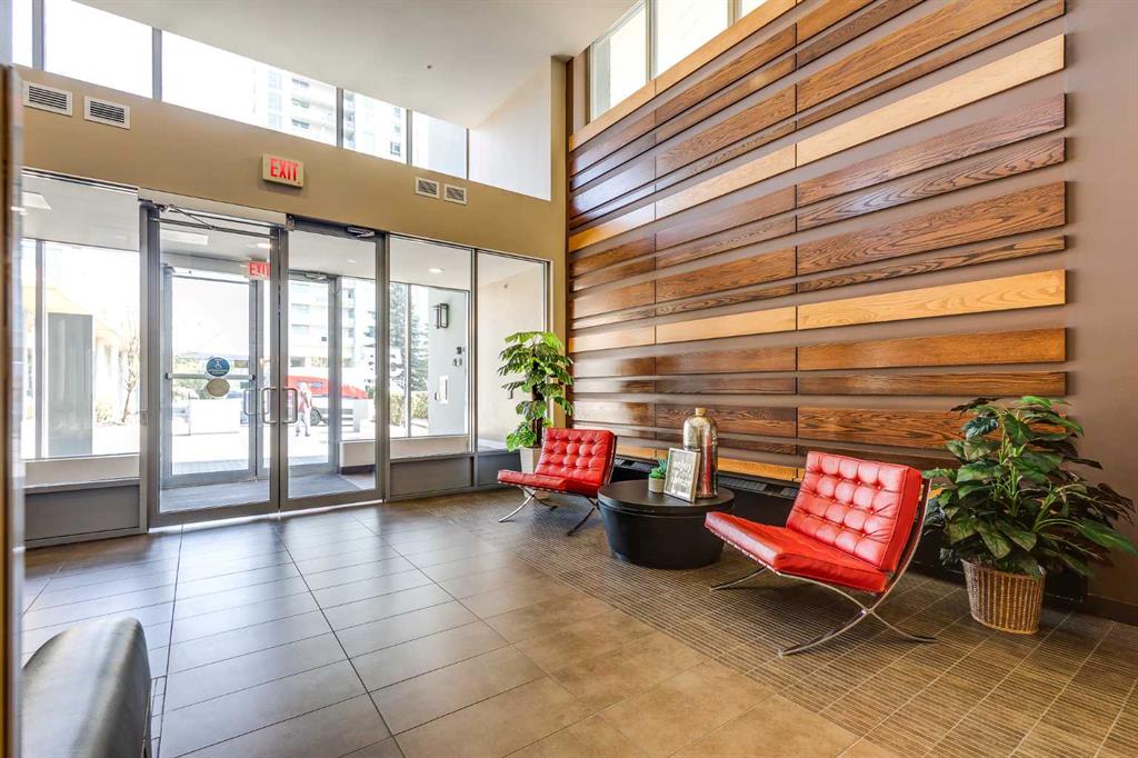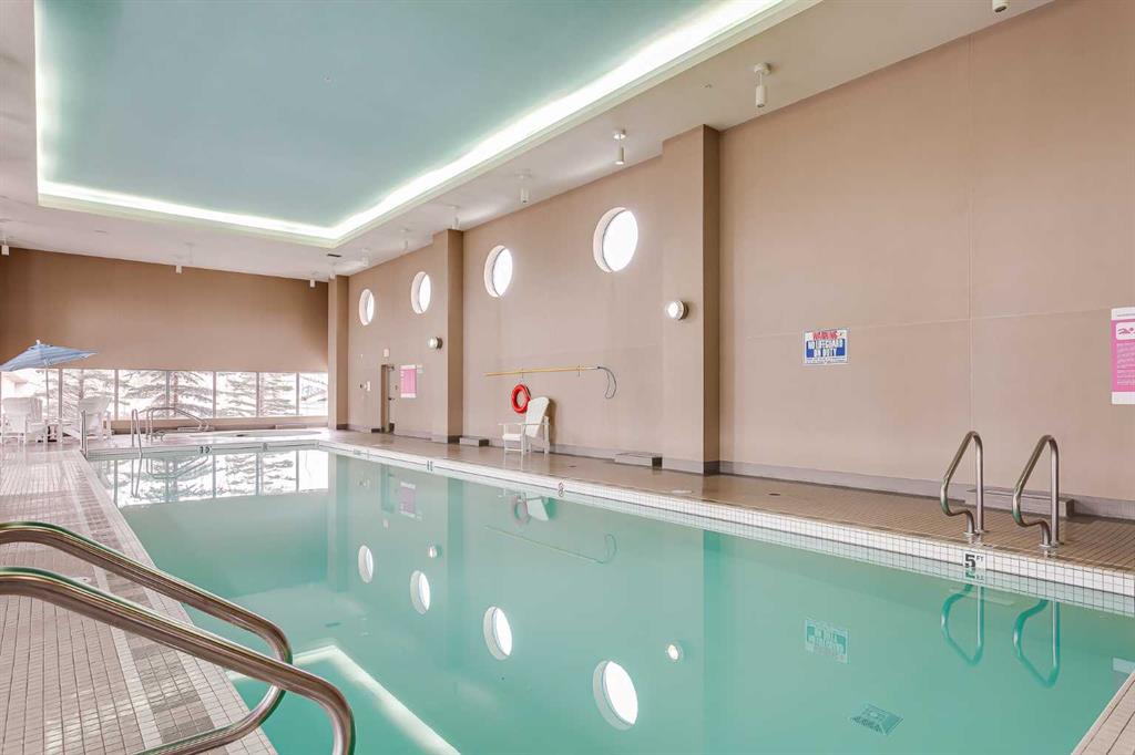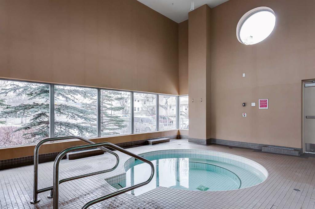 The well sized bedroom enjoys the view & natural light from the large window and a full closet for your wardrobe and allowing for a restful retreat. A versatile den provides the flexibility of a home office, study, or creative corner. The 4 piece bathroom is centrally located for convenience and practicality. Additional highlights include in-suite Laundry, a titled underground parking stall, a separate storage locker, plus underground visitor parking. Residents of this sought-after building enjoy exceptional amenities including an indoor pool, hot tub, well equipped gym, and a recreation room with table tennis, a pool table & lounging areas designed for leisure and connection.