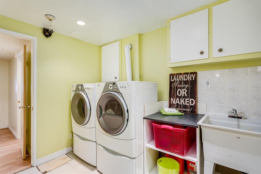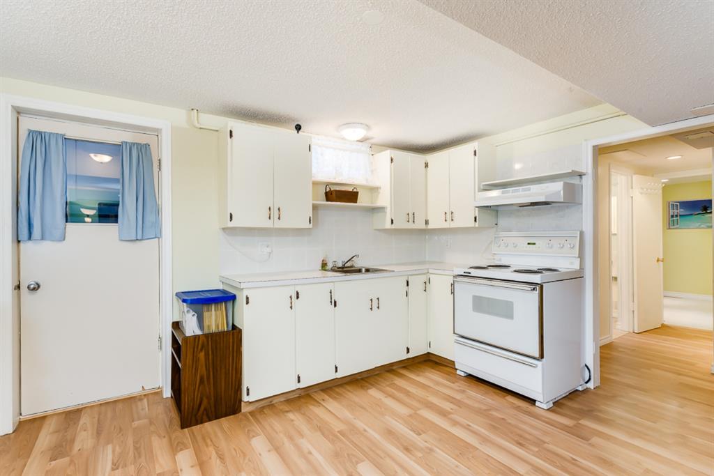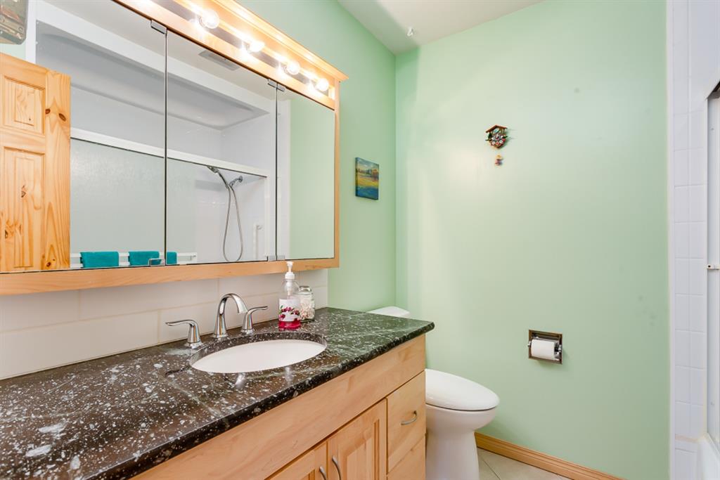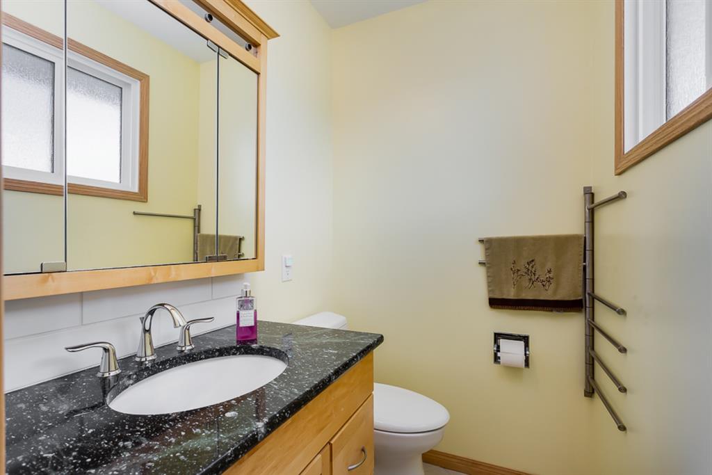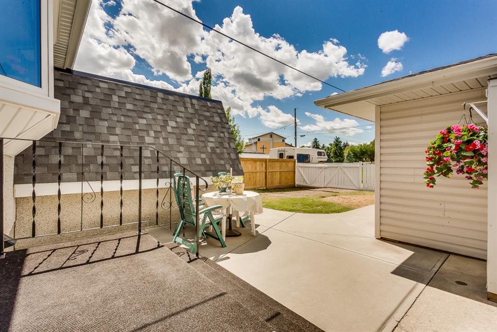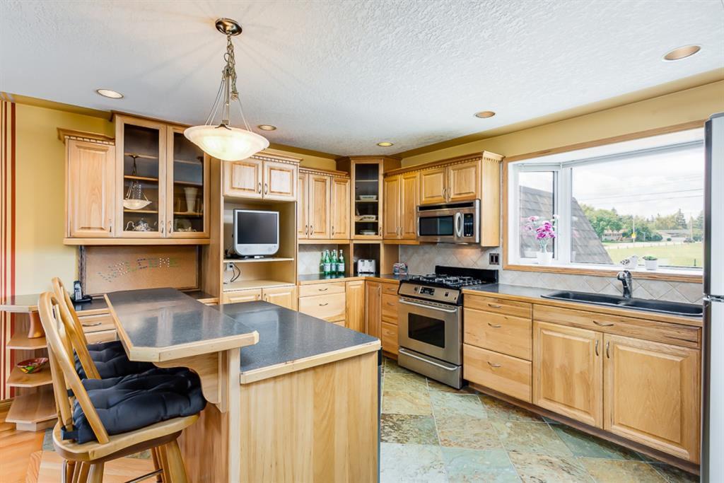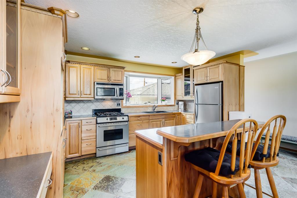 Location, Price & Move In Ready! This Impressive bungalow backs onto an Extensive Green Space/School and rests on a very quiet street! With almost 1200 sq feet up & a full basement, this home easily accommodates a family with direct access to school, homeowners looking for quick access to important thoroughfares, shopping & transit, a savvy investor looking to live up & down but still have a 1 bedroom illegal suite as a mortgage helper, or the tradesperson wanting the massive garage, parking for your utility trailer, 40′ Motorhome, toys & a home office. The main floor features; Immaculate HARD WOOD & SLATE Tile flooring; knock down ceiling with pot lights; an open concept layout w/an extensive UPGRADED KITCHEN w/HICKORY cabinetry, under cabinet lighting, St. Steele Appliances incl. GAS STOVE, a west facing bay window overlooking the yard & green space, Island w/eating bar & exceptional counter space for prepping & entertaining; 3 bedrooms up incl. a good sized Master with his & her closets + an updated ensuite w/GRANITE counter; 2 more good sized bedrooms; a family bath updated w/tub surround, Maple cabinetry & GRANITE; all New VINYL WINDOWS throughout the main, SOLID PINE interior doors & Central Air for comfort. The inviting basement offers a SPACIOUS Rec Room w/new carpet & a cozy GAS FIREPLACE – perfect to watch movies, entertain, play games – & a convenient 3-piece bathroom. The illegal suite portion has a SEPARATE heated ENTRANCE w/storage; kitchen; laminate flooring; 3 piece bath; large bedroom w/good sized window; a separate heating system (newer boiler & H2O tank); & access to the shared Laundry Room. Outside, an OVERSIZED 23′ x 27′ HEATED GARAGE awaits w/newer heater, insulated overhead doors, shingles, fascia, 100amp service, & space for working & tinkering. There’s room to relax on the concrete patio & enjoy the west facing yard w/gas line for BBQ or FirePit, a large parking pad for your motorhome/camper (up to 40ft + 30amp hook up in place), a 2nd gate for your work trailer or toys, 3 sheds, & direct access to a massive GREENSPACE/School/Playground. Don’t need RV parking? Push that gate back & use that 1,065 sq feet of space to add sod or create an AMAZING BACK YARD ENTERTAINMENT SPACE! Locations & homes like this don’t come up often! Other important upgrades: Roof, eaves, fascia (2015), Furnace (2009), poured concrete sidewalk around the home, new fence, gates & more. This home’s a must see! Great Home, Exceptional Location, Outstanding Community. Welcome Home!