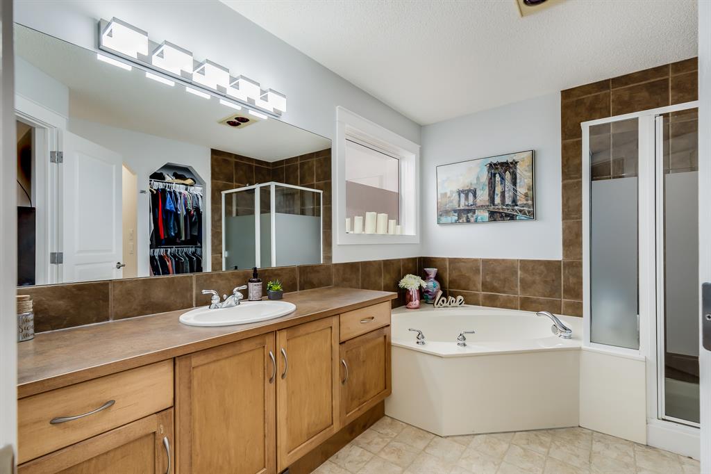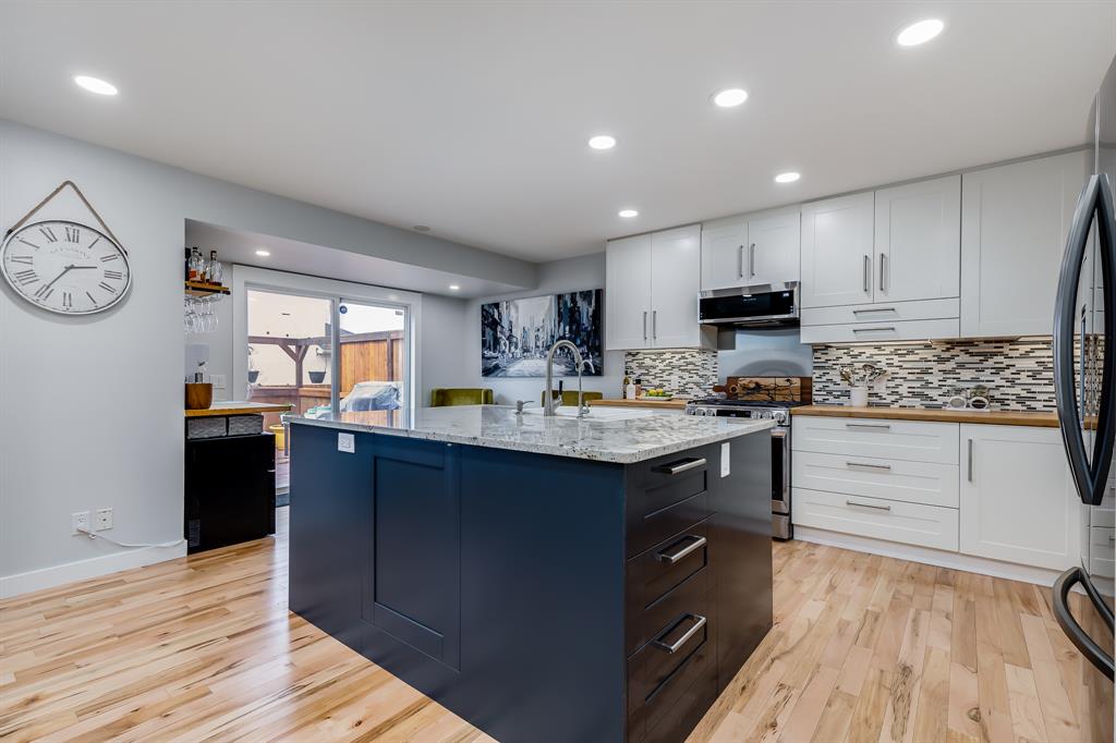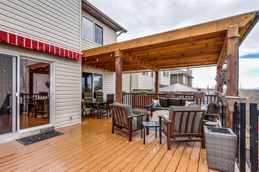Open House Saturday April 29, 1-3pm. Wow! Homes like this rarely become available. From the moment you enter, you’re captivated by the spacious and airy design. The open to below entryway welcomes you into this Impressively updated home which is move-in ready! The open concept main floor features; beautiful hardwood flooring, a large great room with corner gas fireplace, & an IMPRESSIVE renovated KITCHEN with an oversized island, bamboo & granite countertops, extensive floor to ceiling cabinetry, & stainless steel appliances (Gas Stove – 2023 / Dishwasher – 2023 / Refrigerator – 2021). The kitchen flows seamlessly into the nook area and overlooks your private yard with its captivating MOUNTAIN VIEW!! The large deck offers hours of serenity & entertaining with the mountains, green space & pergola (Coolaroo Shades included). The main floor is completed with a half bath, main floor laundry, & a mudroom to access your double attached garage. Upstairs, you discover the spacious primary retreat with LUXURIOUS ENSUITE (separate soaker tub & separate shower) & walk-in closet, a bright & inviting bonus room with addt’l window & space for home office/studying, 2 more generously sized bedrooms, & a full 4-piece family bathroom. The fully finished basement is perfect with an extensive rec/movie room, a Murphy bed for occasional guests (easy to convert into a private bedroom if preferred), a large 3 piece bathroom, & exceptional storage space. Other notable updates/upgrades include; central air conditioning in 2021, new roof in 2020, new hot water tank in 2019, water softener in 2018, reverse osmosis system, LED lighting, neutral paint throughout, & vent/duct cleaning in 2021. A wonderful home in a terrific location – quick access to the extensive pathway system, playground, greenspace, schools, & transit! Don’t miss this one. Call your favourite Realtor & book a private showing!