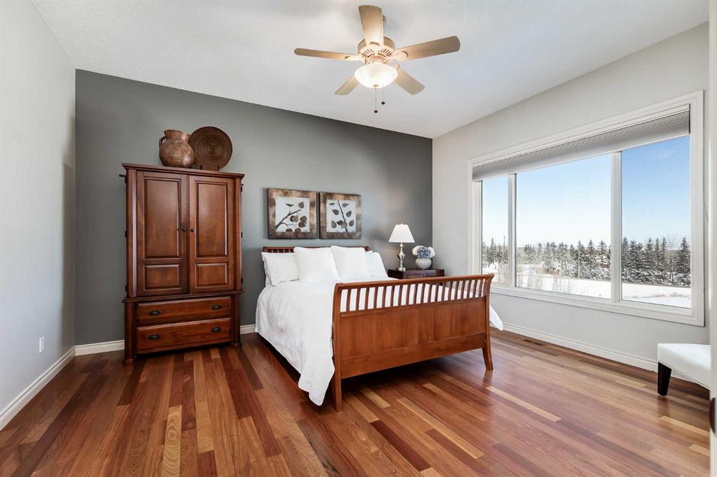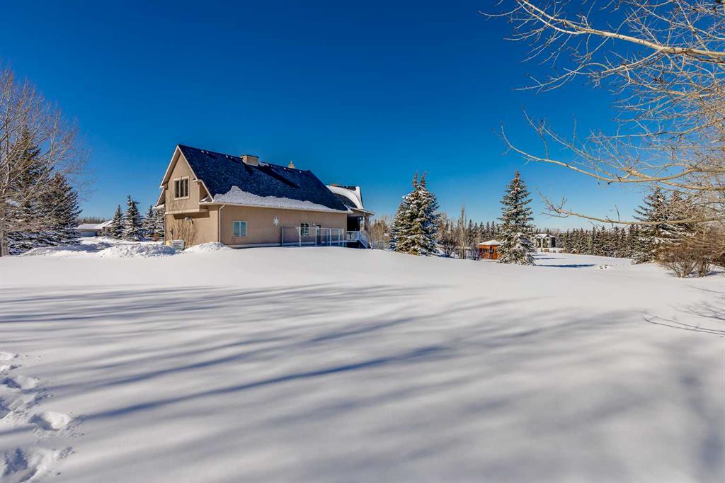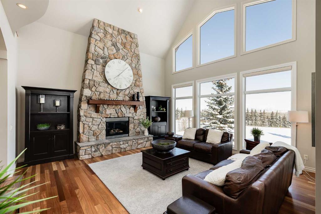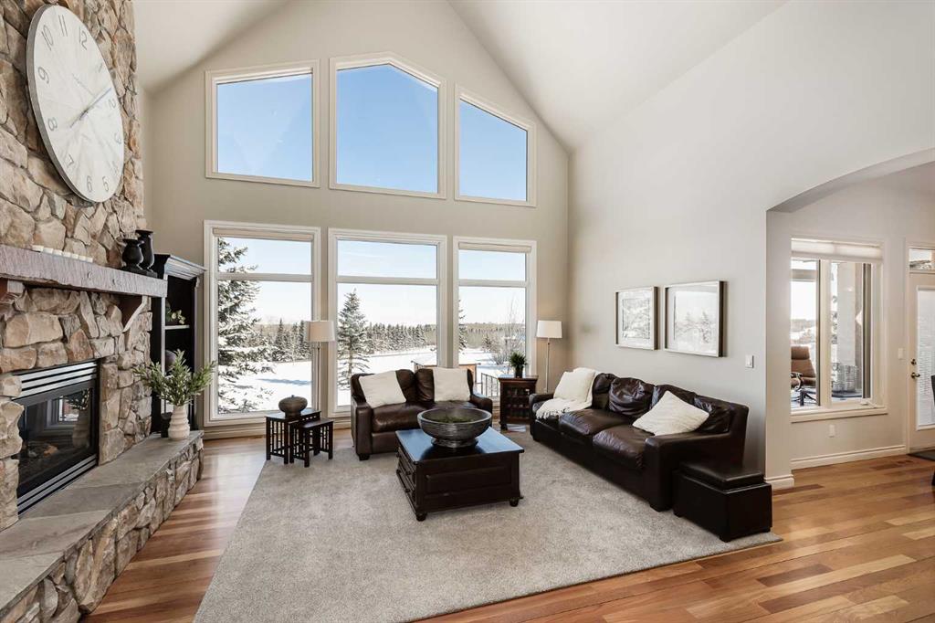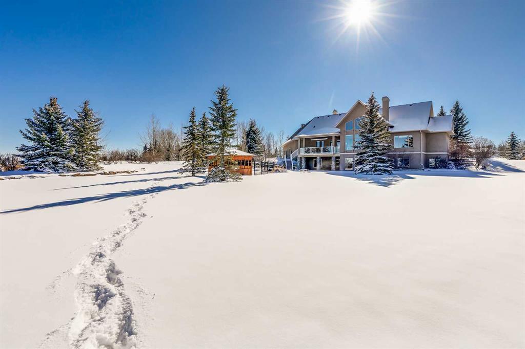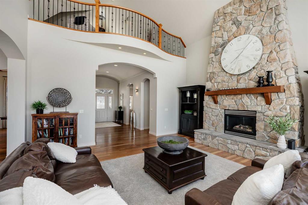 Enjoy privacy and elegance at its finest. This Church Ranches’ bungalow is fully developed with over 4600 sq.ft. of custom details and function. Resting on 1.98 acres, the home features a paved private driveway leading to the oversized triple car garage (insulated, drywalled, heated + expoxy floor) and fully landscaped lot with a stunning yard including a gorgeous garden, walkway, and powered gazebo with outdoor patio (be sure to see seller’s summer photos on this listing). The home has sprawling views of the valley and access to all that Church Ranches has to offer including 3 lakes, swimming, fishing, boating, beaches and miles of walking paths. The inside of this home will amaze you featuring; a barrel-vaulted ceiling in the grand foyer, floor-to-ceiling stone fireplace in the captivating living room, hardwood & tile flooring, 10′ ceilings on the main, a formal dining room with tray ceiling detail, a gourmet kitchen with maple cabinetry, large Island, granite countertops, extensive pantry plus a large laundry/mud room with additional storage room. The breakfast nook is perfect for daily dining and leads to the extensive (covered & heated) composite deck overlooking the tranquil yard. The primary suite will accommodate all your furnishings & hosts a luxurious ensuite with jetted soaker tub, a tiled shower, 2 vanities & a generous walk-in closet. There is also an exquisite loft/family room overlooking the living room with views of the stunning surroundings. The lower walkout level is perfection with its in-floor heating, 9′ ceiling, 3 generously sized bedrooms, 2 full bathrooms, a movie room with french doors, an impressive recreation/2nd family room, a full wet bar with games area, plus access to your stamped concrete patio. Further updates/upgrades include: newer furnace, tankless water heater & roof, & a dog run accessible from the garage. Homes like this rarely become available! Contact your favourite Realtor for a private viewing. Welcome Home!