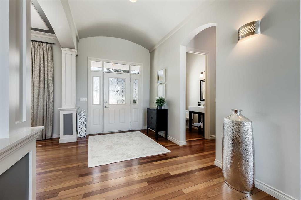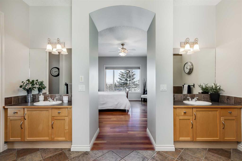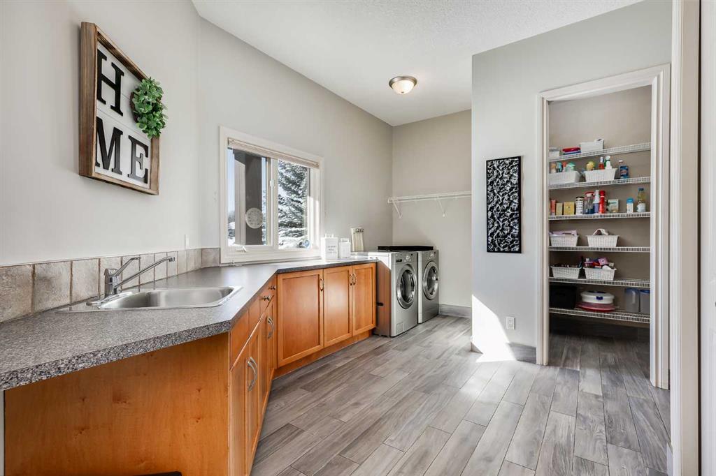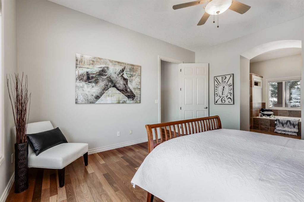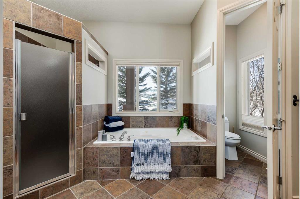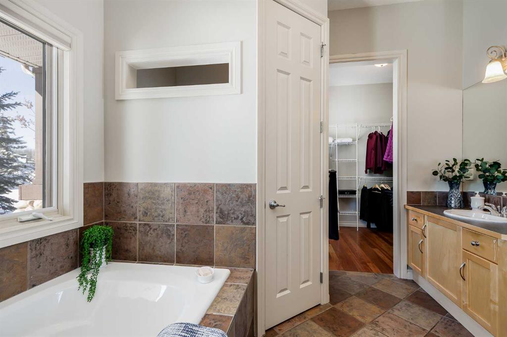 Enjoy privacy and elegance at its finest. This Church Ranches’ bungalow is fully developed with over 4600 sq.ft. of custom details and function. Resting on 1.98 acres, the home features a paved private driveway leading to the oversized triple car garage (insulated, drywalled, heated + expoxy floor) and fully landscaped lot with a stunning yard including a gorgeous garden, walkway, and powered gazebo with outdoor patio (be sure to see seller’s summer photos on this listing). The home has sprawling views of the valley and access to all that Church Ranches has to offer including 3 lakes, swimming, fishing, boating, beaches and miles of walking paths. The inside of this home will amaze you featuring; a barrel-vaulted ceiling in the grand foyer, floor-to-ceiling stone fireplace in the captivating living room, hardwood & tile flooring, 10′ ceilings on the main, a formal dining room with tray ceiling detail, a gourmet kitchen with maple cabinetry, large Island, granite countertops, extensive pantry plus a large laundry/mud room with additional storage room. The breakfast nook is perfect for daily dining and leads to the extensive (covered & heated) composite deck overlooking the tranquil yard. The primary suite will accommodate all your furnishings & hosts a luxurious ensuite with jetted soaker tub, a tiled shower, 2 vanities & a generous walk-in closet. There is also an exquisite loft/family room overlooking the living room with views of the stunning surroundings. The lower walkout level is perfection with its in-floor heating, 9′ ceiling, 3 generously sized bedrooms, 2 full bathrooms, a movie room with french doors, an impressive recreation/2nd family room, a full wet bar with games area, plus access to your stamped concrete patio. Further updates/upgrades include: newer furnace, tankless water heater & roof, & a dog run accessible from the garage. Homes like this rarely become available! Contact your favourite Realtor for a private viewing. Welcome Home!